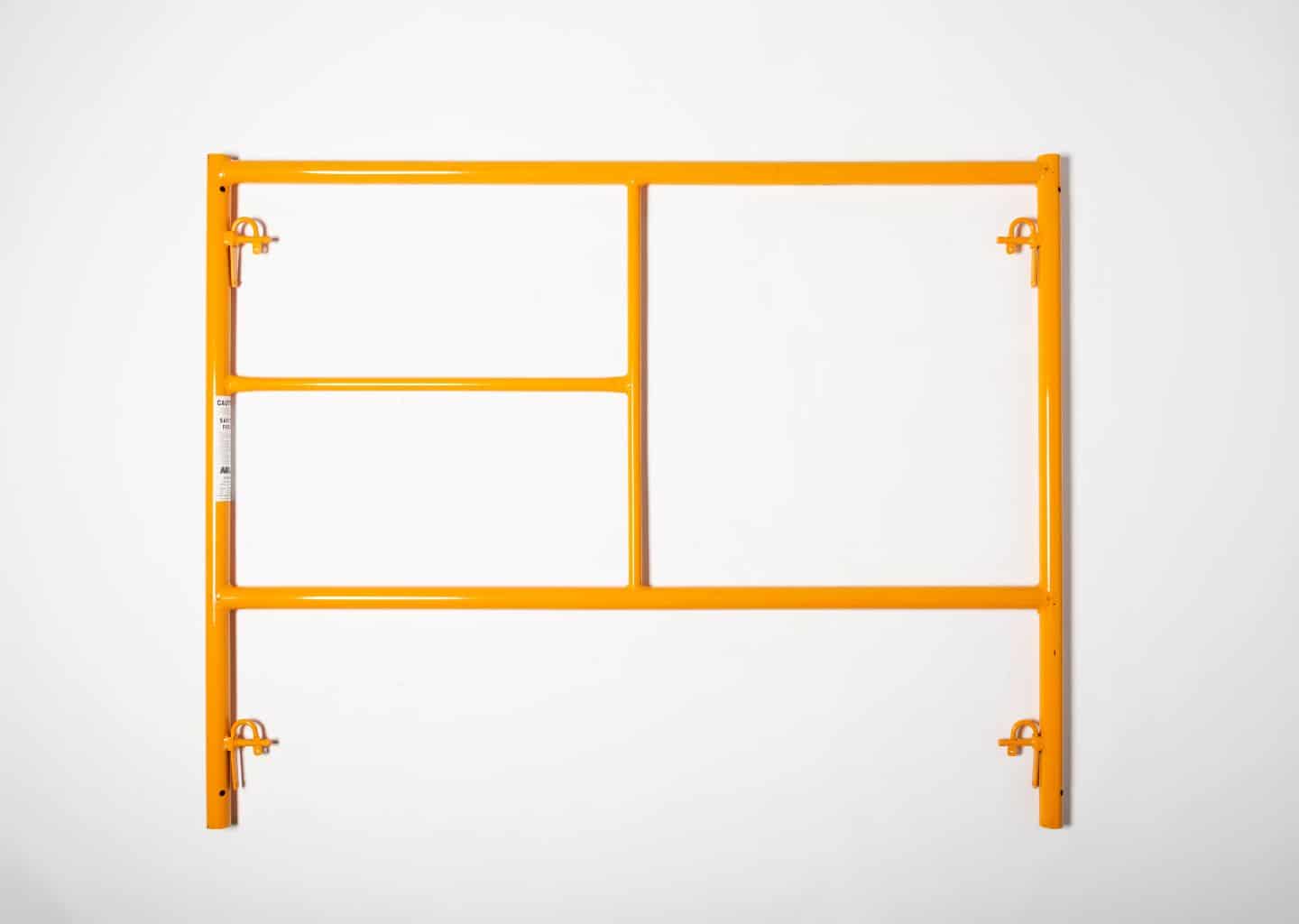 “Step type scaffold frame; 5 ft W x 4 Ft H frame with glossy powder coated finish 36″” lock spacing- weight 31lbs.”