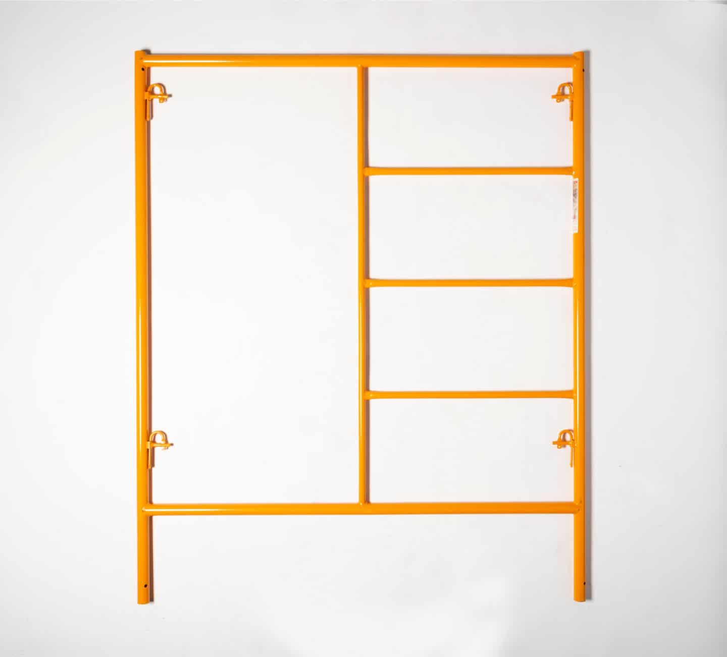 “Step type scaffold frame; 5 ft W x 6’4″” H frame with glossy powder coated finish – weight 48.46 lbs”