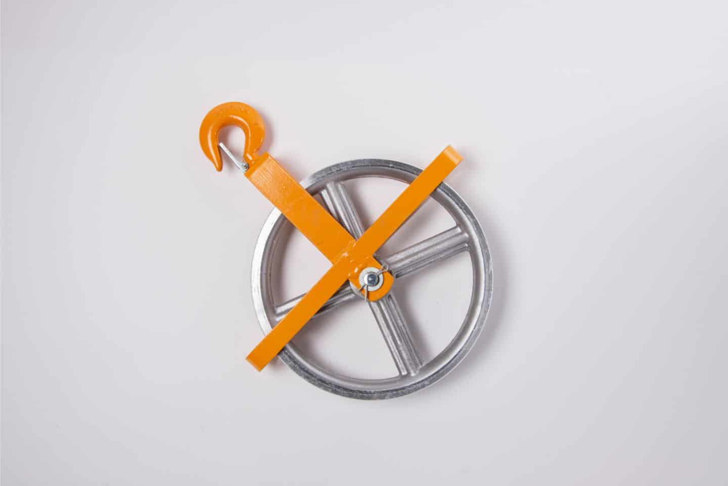 “12 inch heavy duty well wheel for up to 1 inch rope to hoist materials, connects to hoist arm with 360 degree swivel head HA1. Maximum load capacity of 250 lbs. – weight 8.15 lbs”